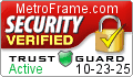Security Verified : In order for metroframe.com to qualify for the Trust Guard Security Verified Seal, we verify that their website is using at least 128-Bit SSL Encryption on pages where private information can be entered, such as credit cards, Social Security numbers, loan information, etc. and we monitor the SSL certificates expiration.