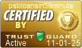 Certified: In order to receive a Trust Guard Certified Seal, psbloansin59minutes.com must meet all of the requirements for the Security Verified, Privacy Verified, and Business Verified Seals, plus a managing member of the company must have their address verified by Trust Guard, in addition to providing an additional phone number. All managing member information is kept private, however, it provides Trust Guard with alternative contact options if needed. |