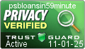 We certify that the information we have received from psbloansin59minutes.com has been verified to the best of our ability, and that they have met all of the Trust Guard Verification requirements. ~Trust Guard |